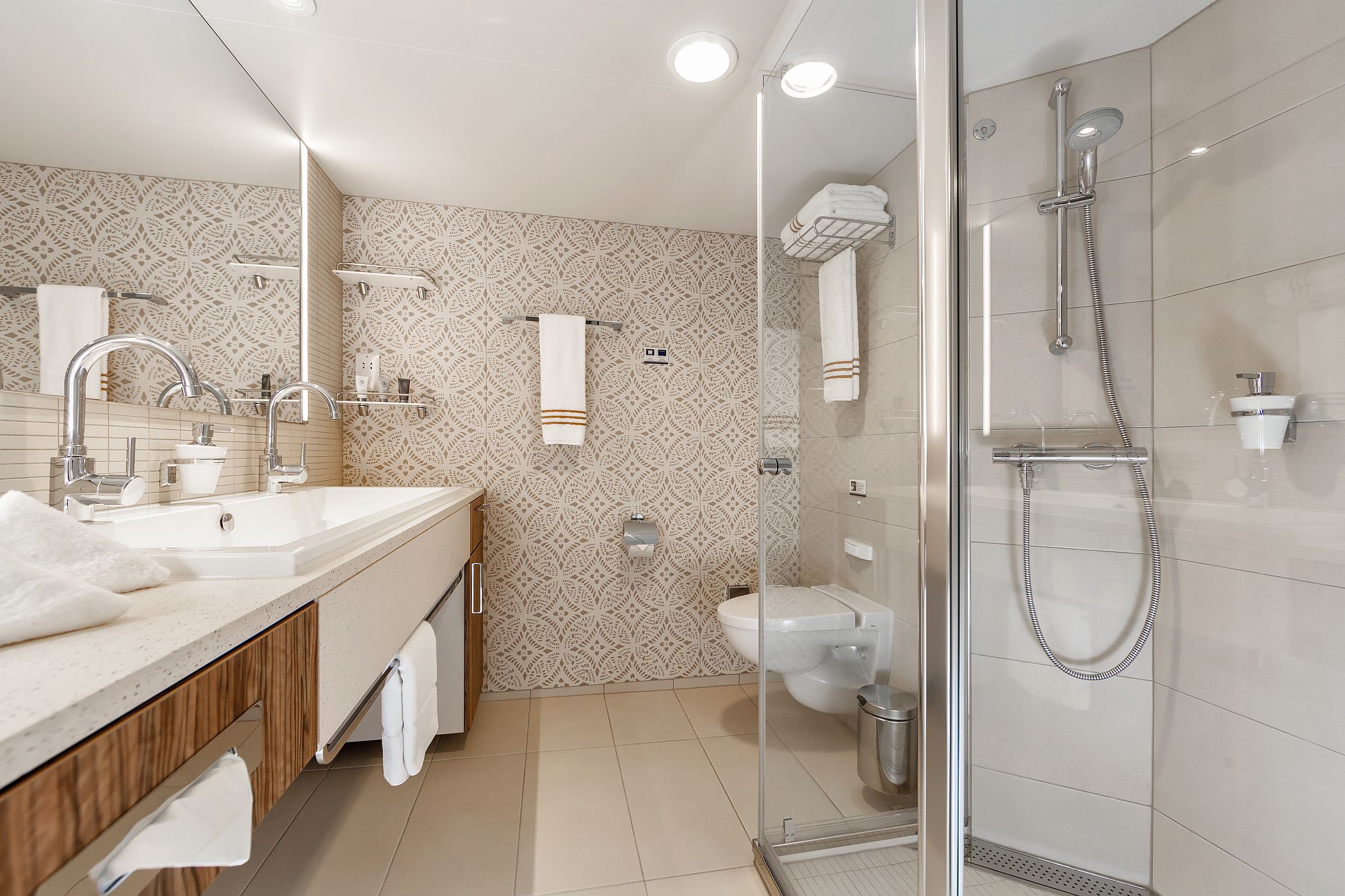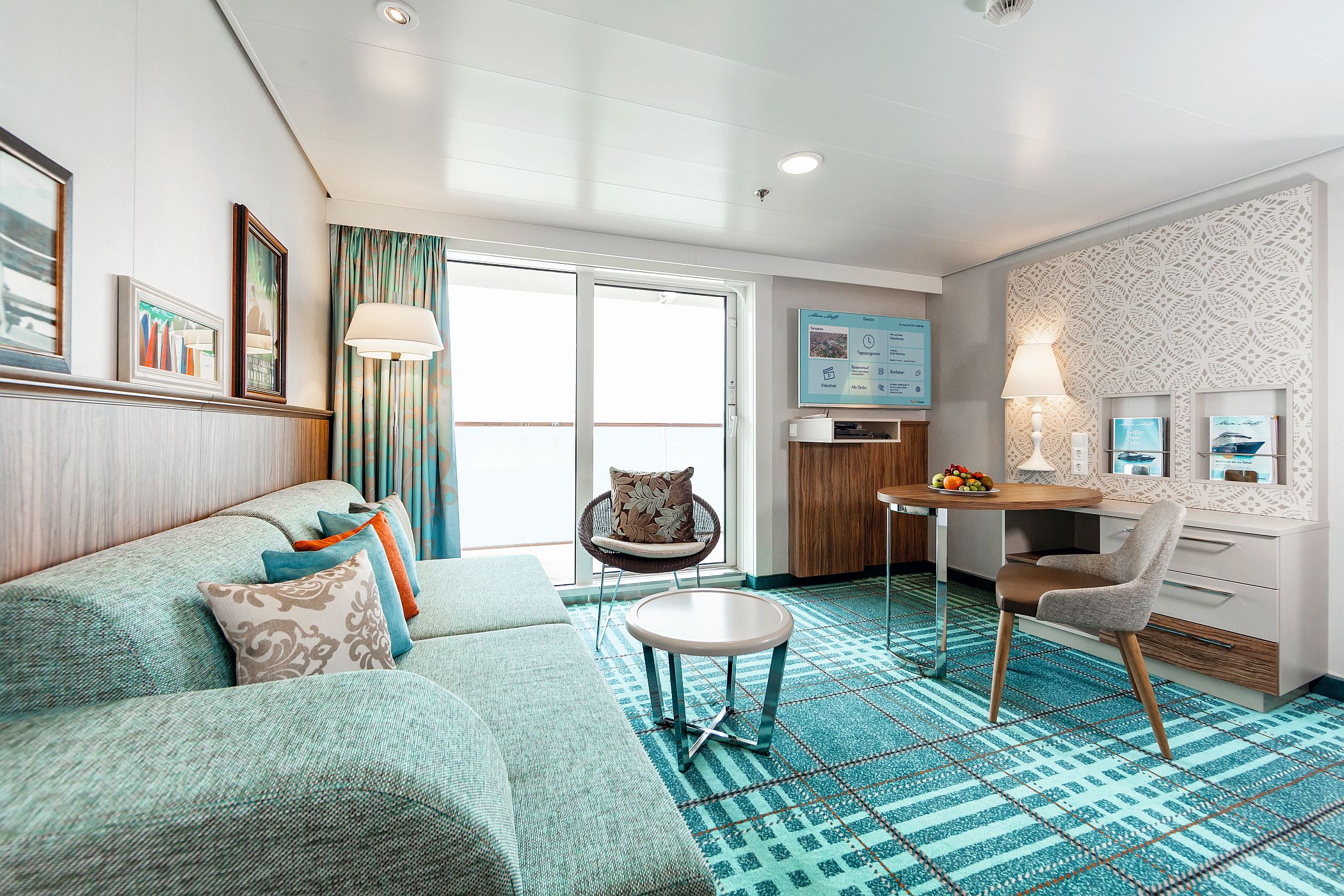 Kabiny na Mein Schiff 4 to przestrzeń, komfort i elegancki minimalizm. Wnętrza utrzymano w jasnych barwach, z drewnianymi detalami i dużą ilością światła dziennego. Wszystkie wyposażone są w telewizor, sejf, minibar, klimatyzację, suszarkę do włosów oraz zestaw do kawy i herbaty.